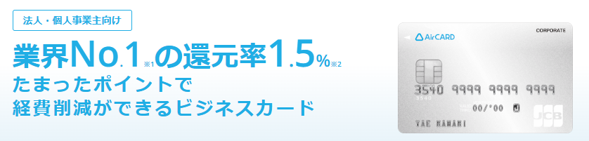 Airカードは業界No.1の還元率(1.5%)をもつ法人カードです。