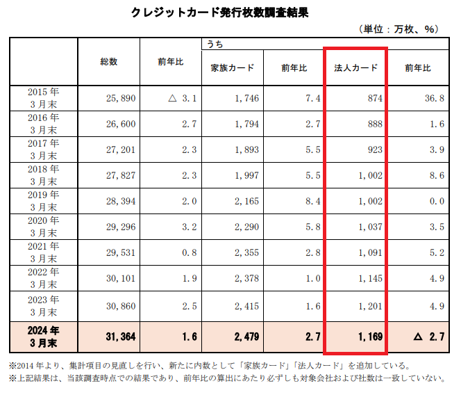 こちらは「家族カード」と「法人カード」の発行枚数がわかるデータです。