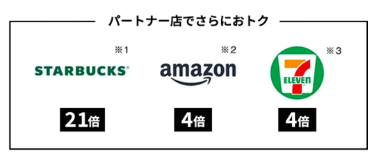 スターバックス・セブン-イレブン・Amazonなどの優待加盟店で利用するとポイント還元率がUPしますよ!