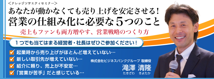 【残り2名】あなたが動かなくても売り上げを安定させる!~営業の仕組み化に必要な5つのこと~