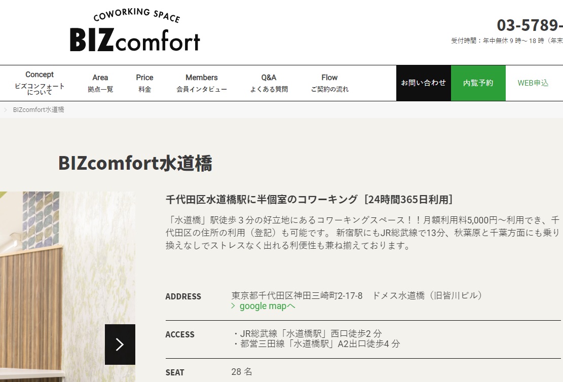シェアオフィス・バーチャルオフィス@東京都千代田区|ナレッジソサエティ > コワーキングスペース東京(BIZcomfort水道橋)