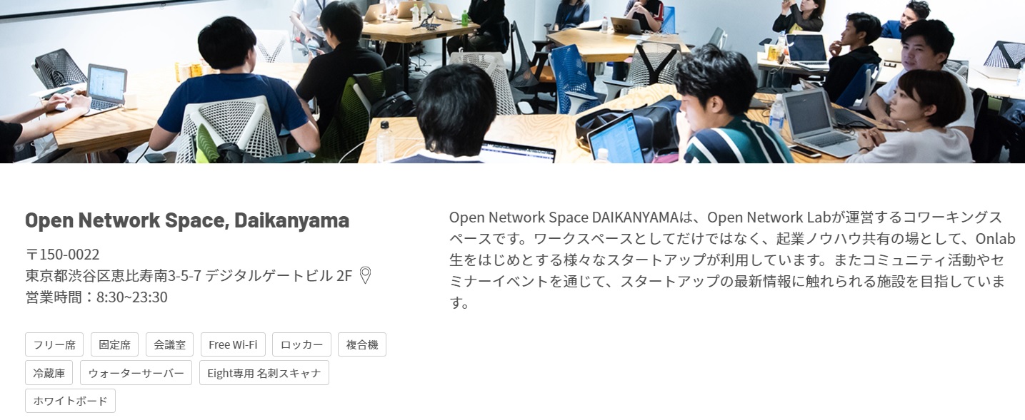 シェアオフィス・バーチャルオフィス@東京都千代田区|ナレッジソサエティ > コワーキングスペース東京(opennetworkspacedaikanyama)