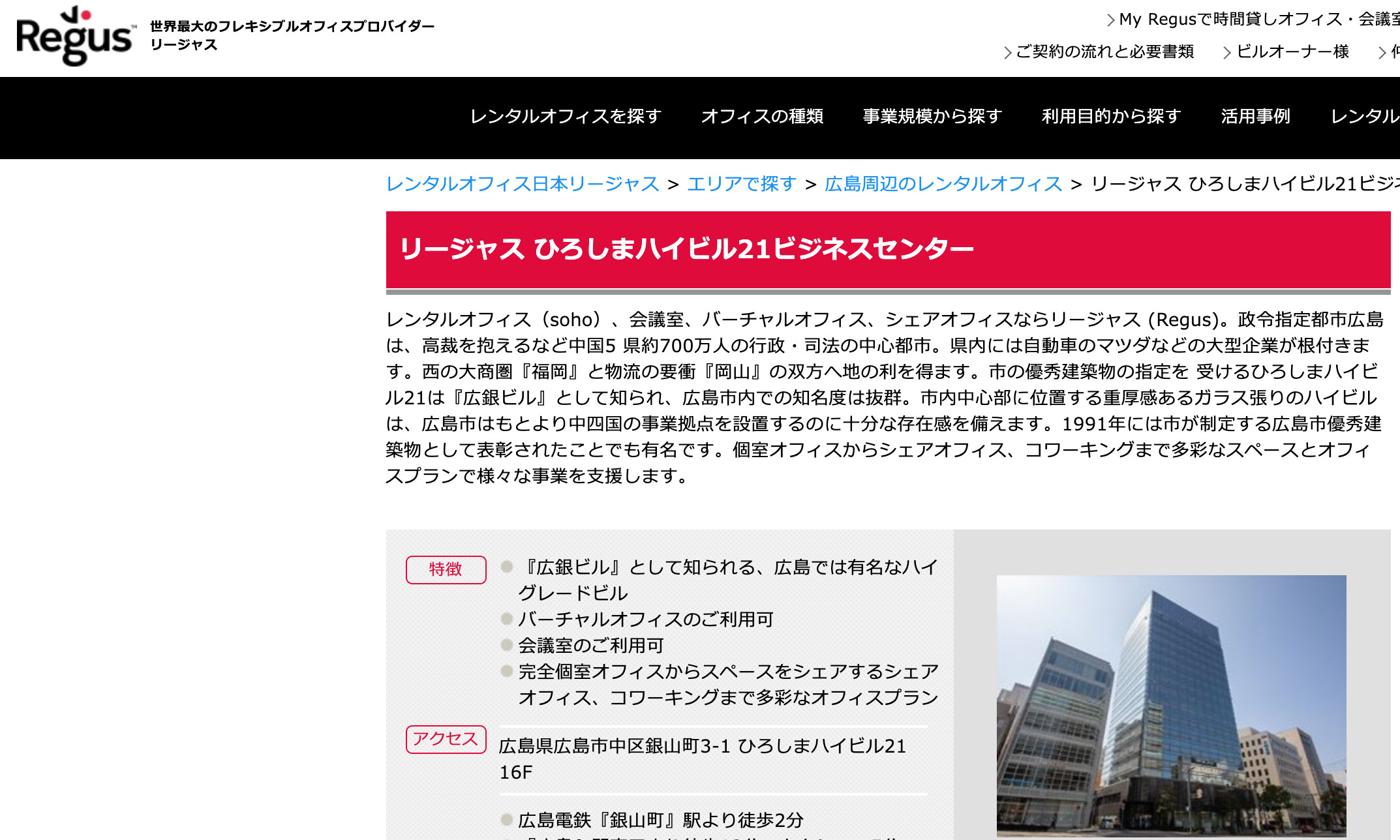 バーチャルオフィス リージャス ひろしまハイビル21ビジネスセンター