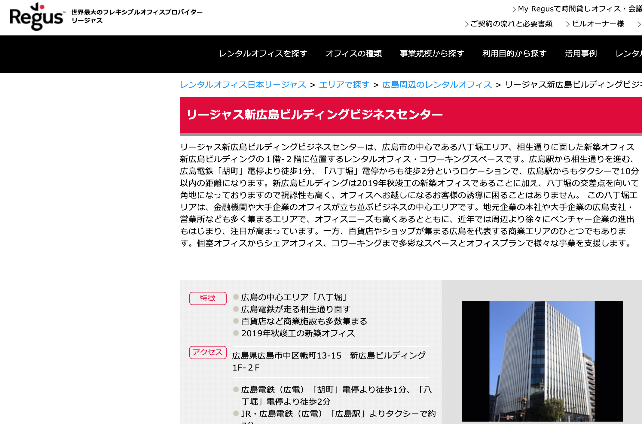 シェアオフィス・バーチャルオフィス@東京都千代田区|ナレッジソサエティ > シェアオフィス リージャス新広島ビルディングビジネスセンター