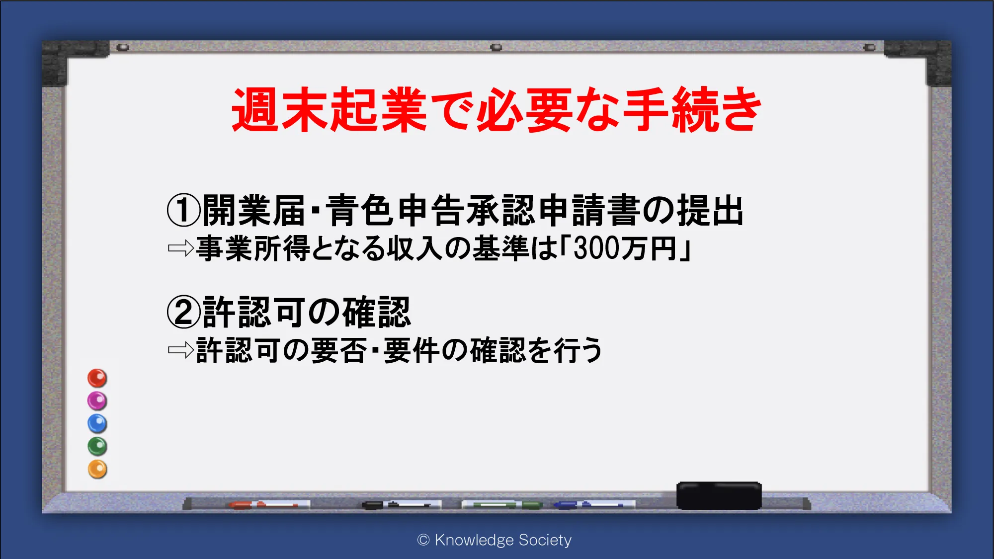 シェアオフィス・バーチャルオフィス@東京都千代田区|ナレッジソサエティ > 週末起業で必要な手続き