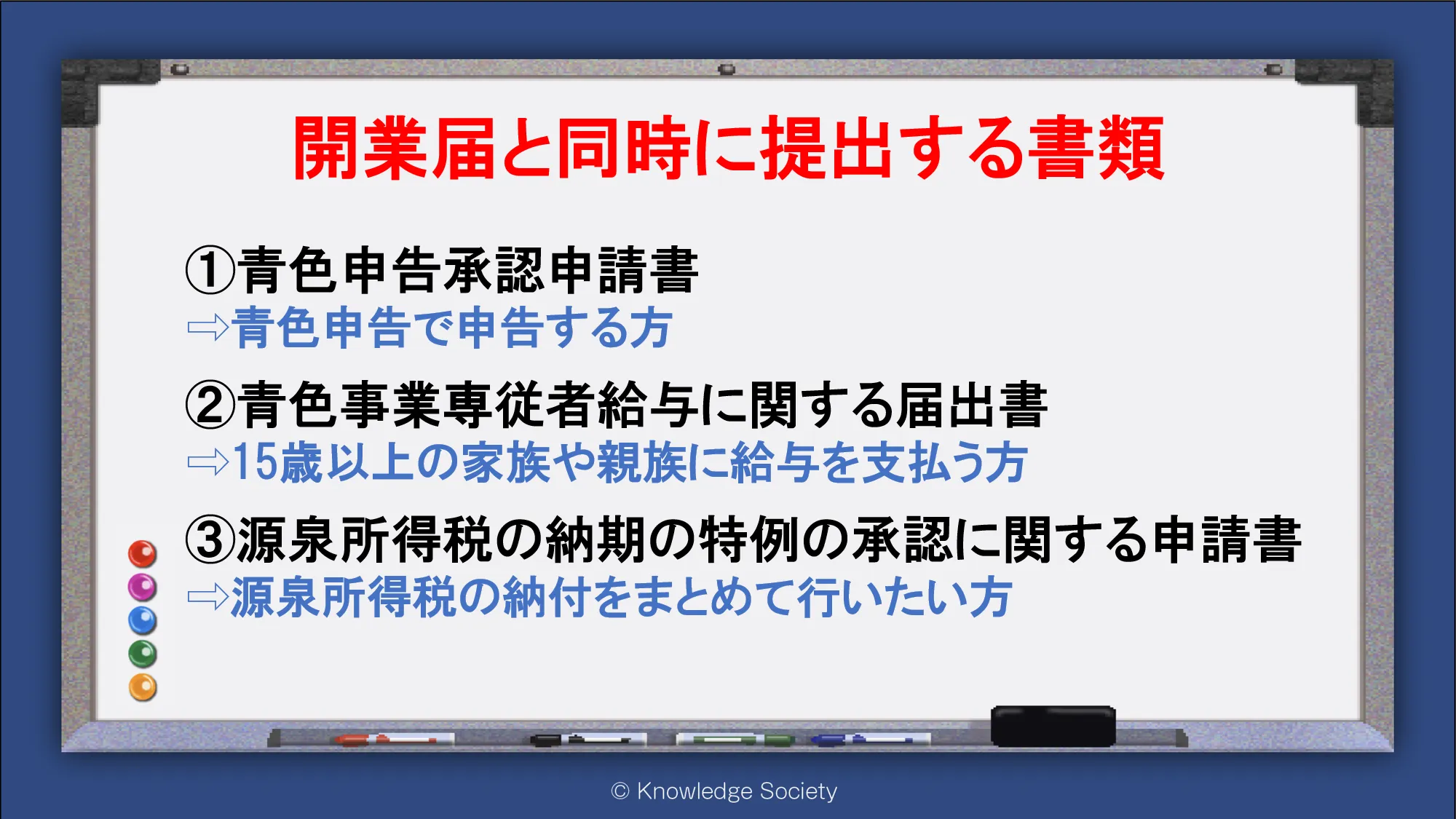 シェアオフィス・バーチャルオフィス@東京都千代田区|ナレッジソサエティ > 開業届と同時に提出する書類