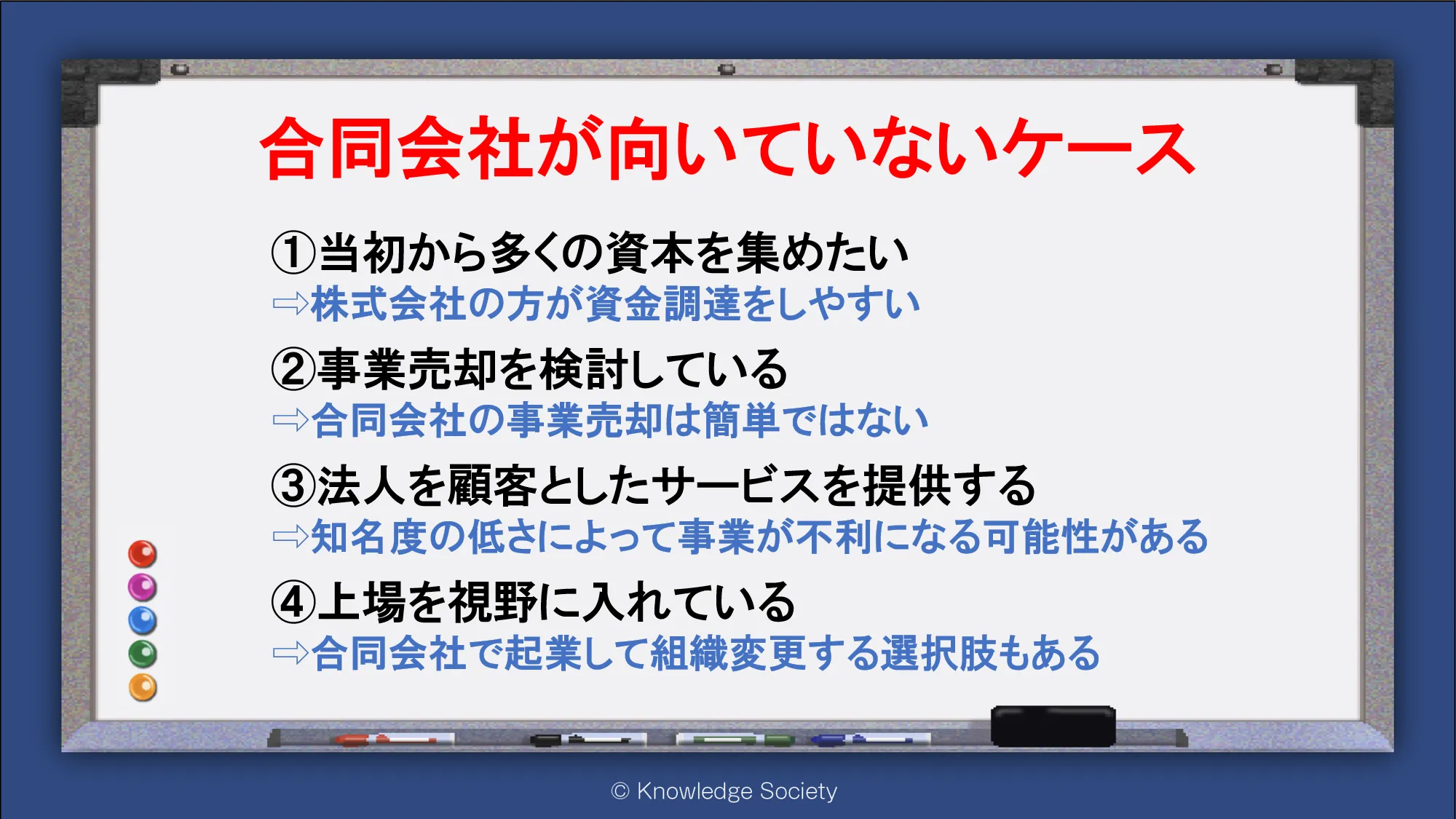 シェアオフィス・バーチャルオフィス@東京都千代田区|ナレッジソサエティ > 合同会社が向いていないケース