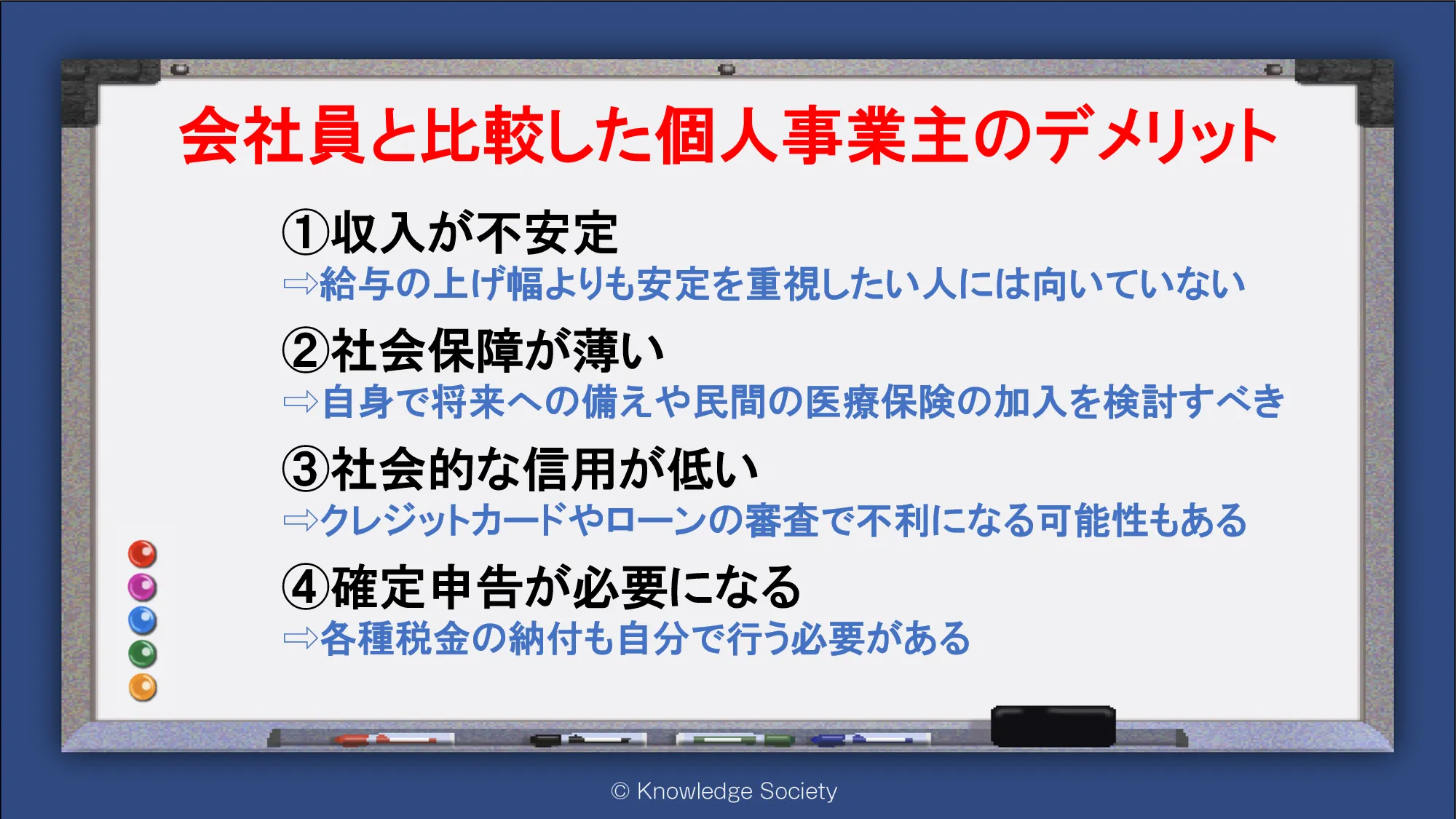 シェアオフィス・バーチャルオフィス@東京都千代田区|ナレッジソサエティ > 会社員と比較した個人事業主のデメリット