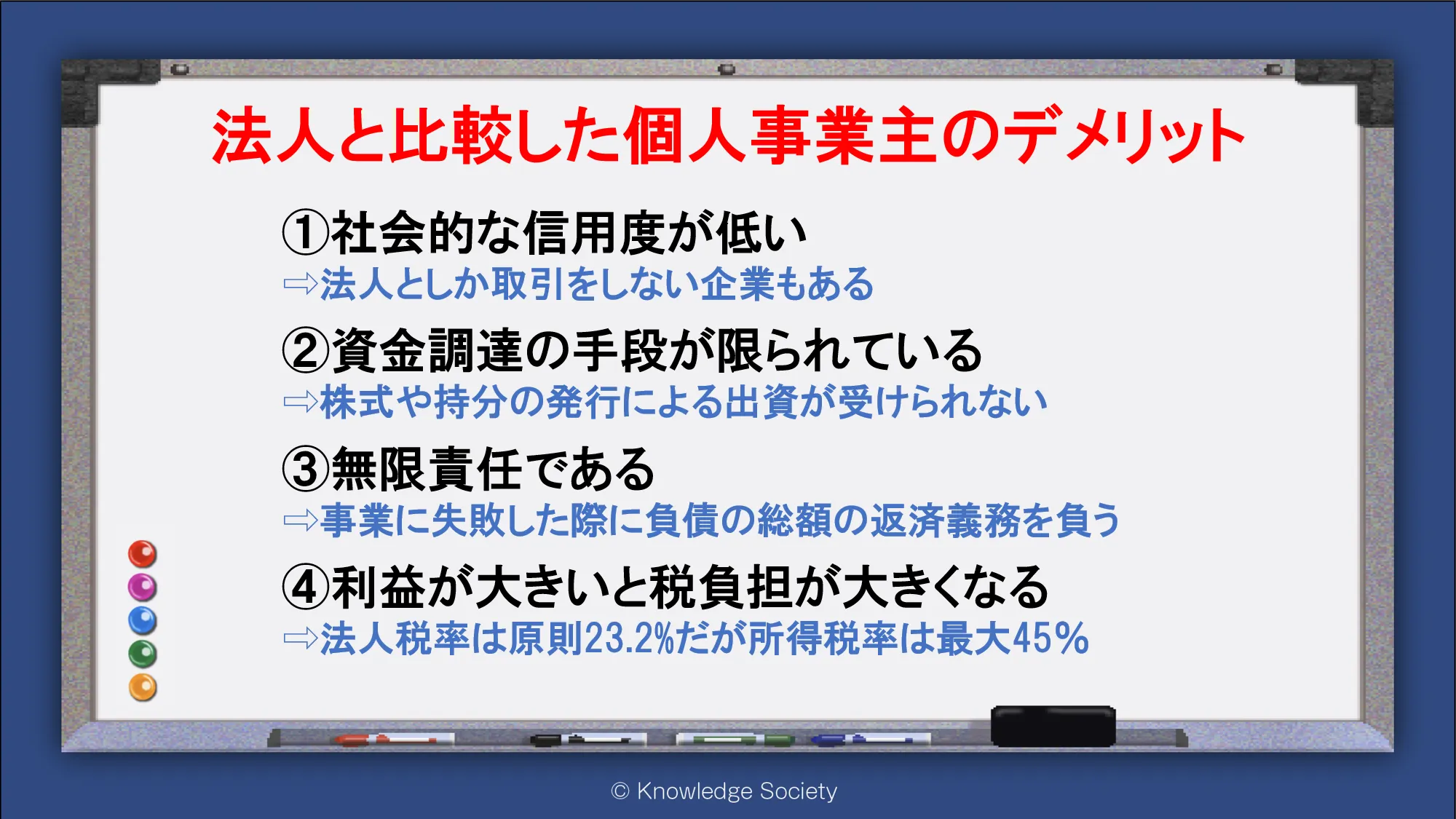 シェアオフィス・バーチャルオフィス@東京都千代田区|ナレッジソサエティ > 法人と比較した個人事業主のデメリット