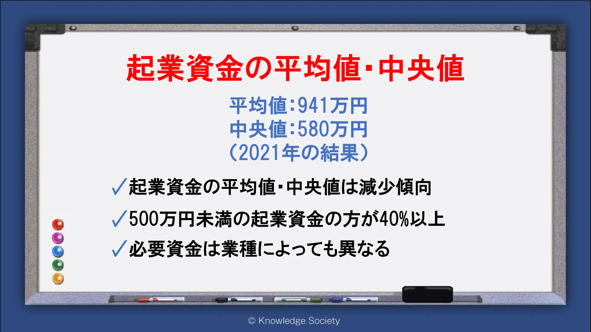 シェアオフィス・バーチャルオフィス@東京都千代田区|ナレッジソサエティ > 起業資金の平均値・中央値