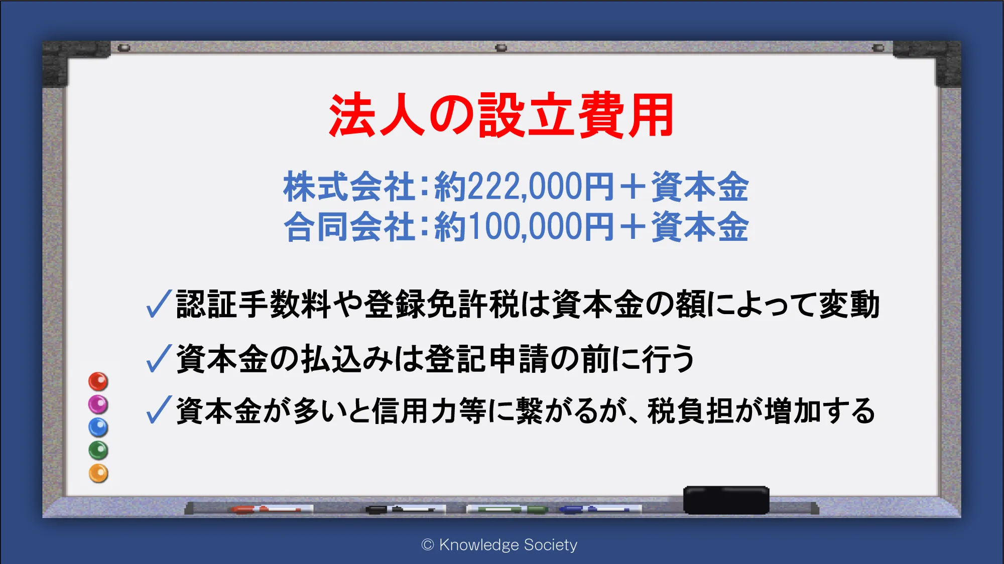 シェアオフィス・バーチャルオフィス@東京都千代田区|ナレッジソサエティ > 法人の設立費用