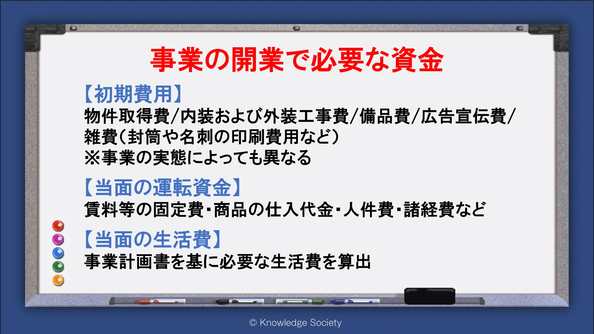 シェアオフィス・バーチャルオフィス@東京都千代田区|ナレッジソサエティ > 開業で必要な資金