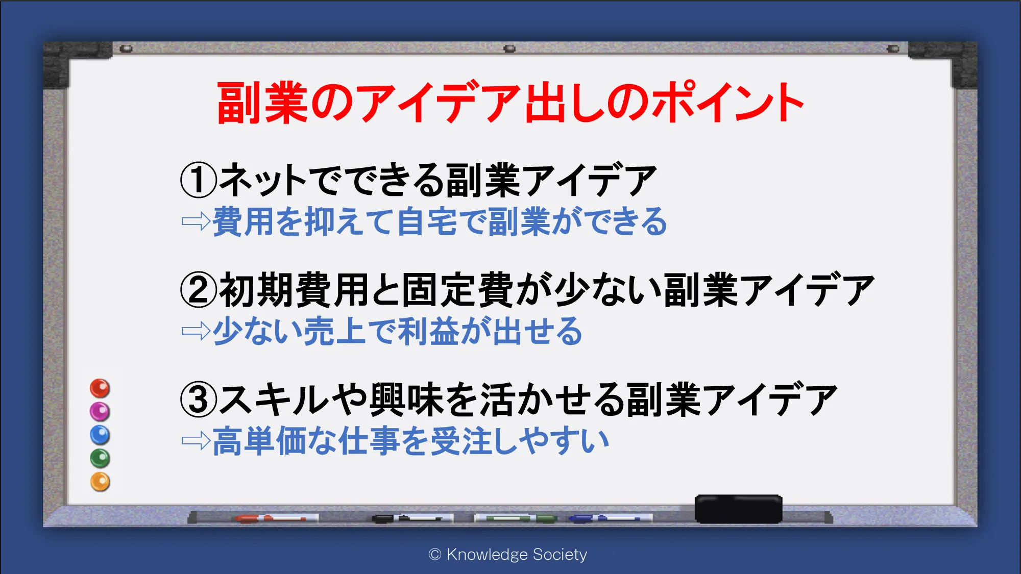 シェアオフィス・バーチャルオフィス@東京都千代田区|ナレッジソサエティ > 副業のアイデア出しのポイント