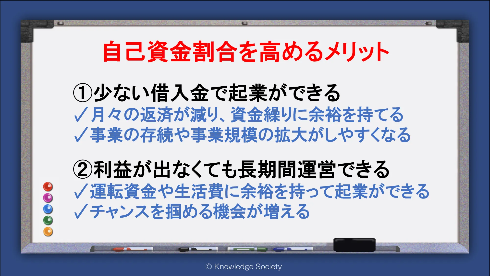 シェアオフィス・バーチャルオフィス@東京都千代田区|ナレッジソサエティ > 自己資金割合を高めるメリット