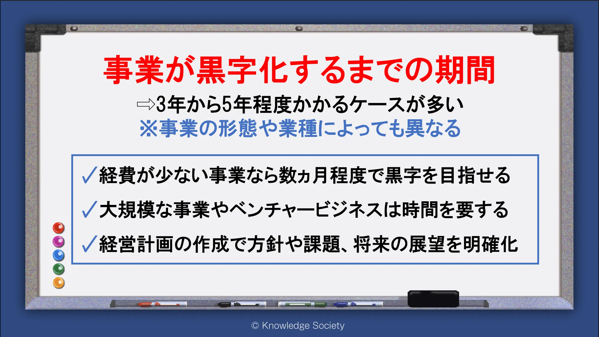 シェアオフィス・バーチャルオフィス@東京都千代田区|ナレッジソサエティ > 事業が黒字化するまでの期間