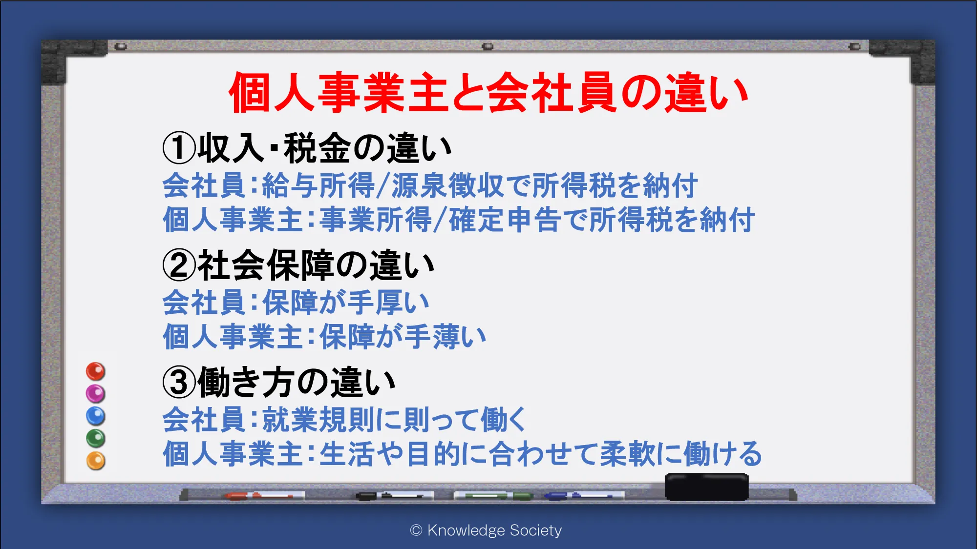 シェアオフィス・バーチャルオフィス@東京都千代田区|ナレッジソサエティ > 個人事業主と会社員の違い
