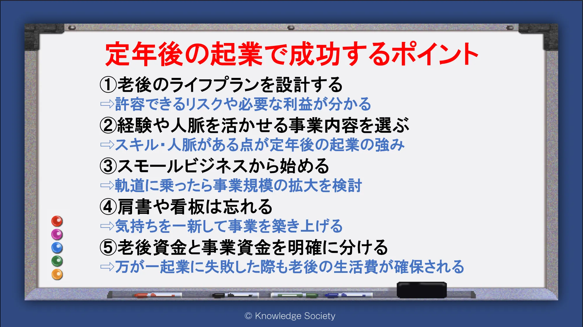 シェアオフィス・バーチャルオフィス@東京都千代田区|ナレッジソサエティ > 定年後の起業で成功するポイント