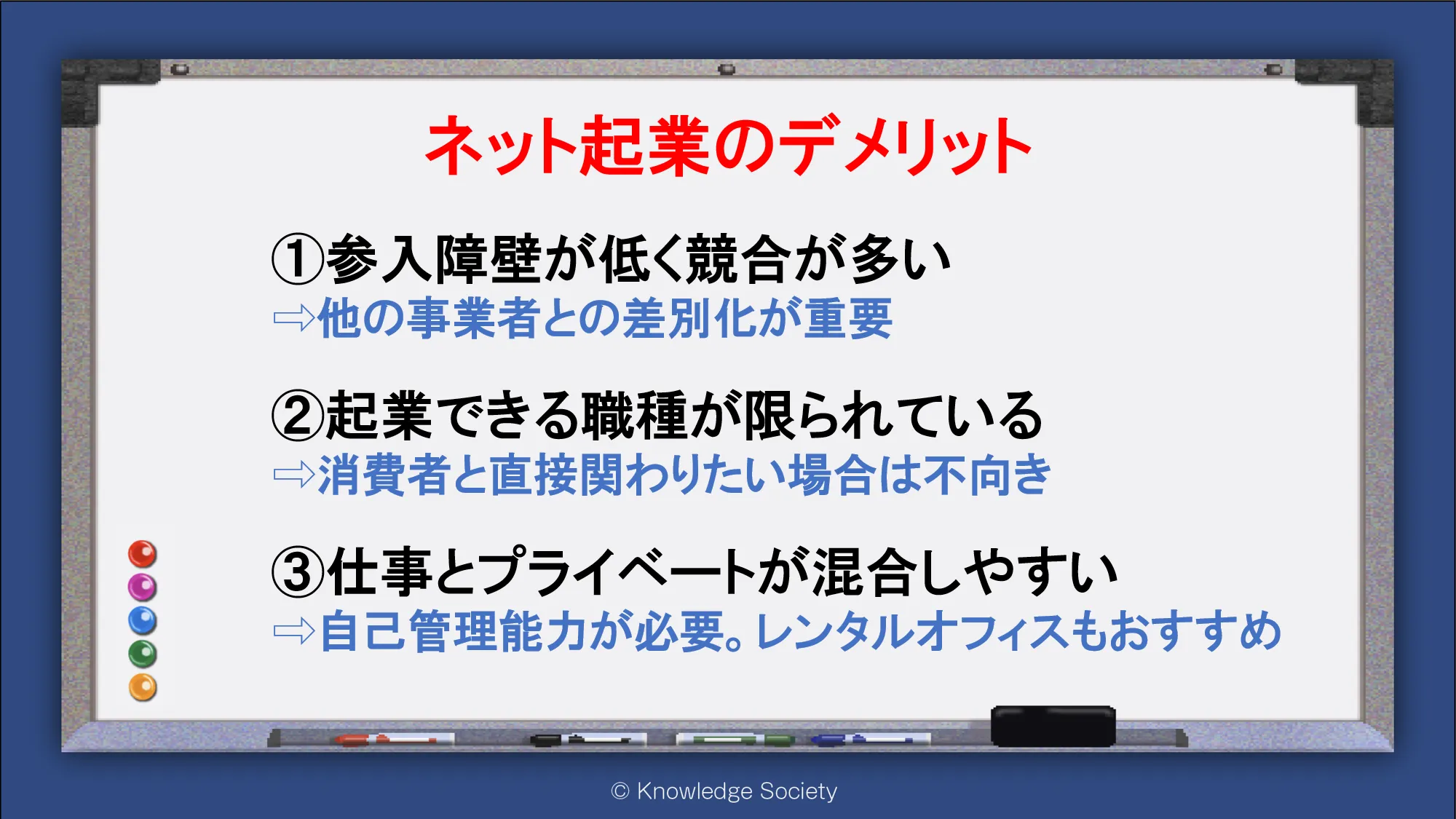 シェアオフィス・バーチャルオフィス@東京都千代田区|ナレッジソサエティ > ネット起業のデメリット