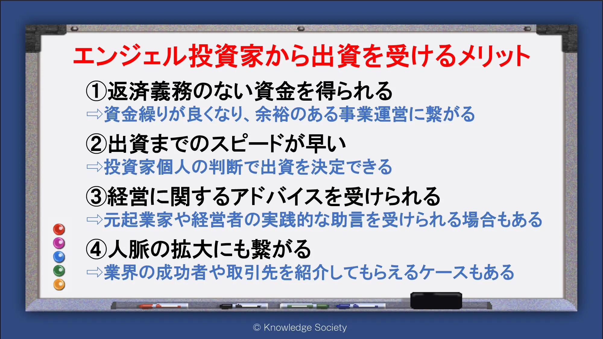 シェアオフィス・バーチャルオフィス@東京都千代田区|ナレッジソサエティ > エンジェル投資家から出資を受けるメリット