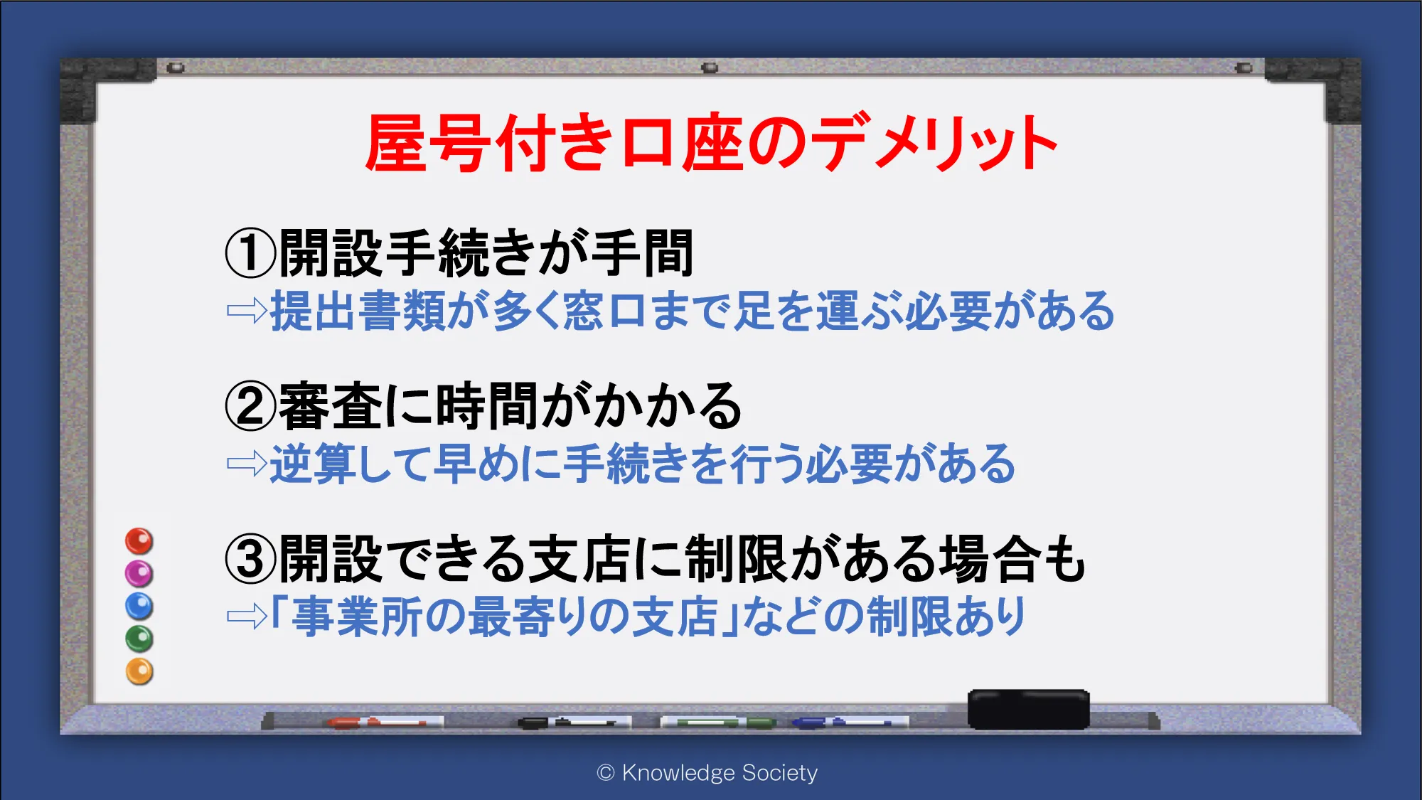 シェアオフィス・バーチャルオフィス@東京都千代田区|ナレッジソサエティ > 屋号付き口座のデメリット