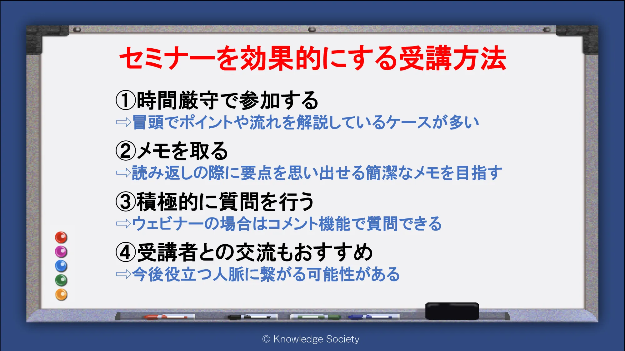 シェアオフィス・バーチャルオフィス@東京都千代田区|ナレッジソサエティ > セミナーを効果的にする受講方法