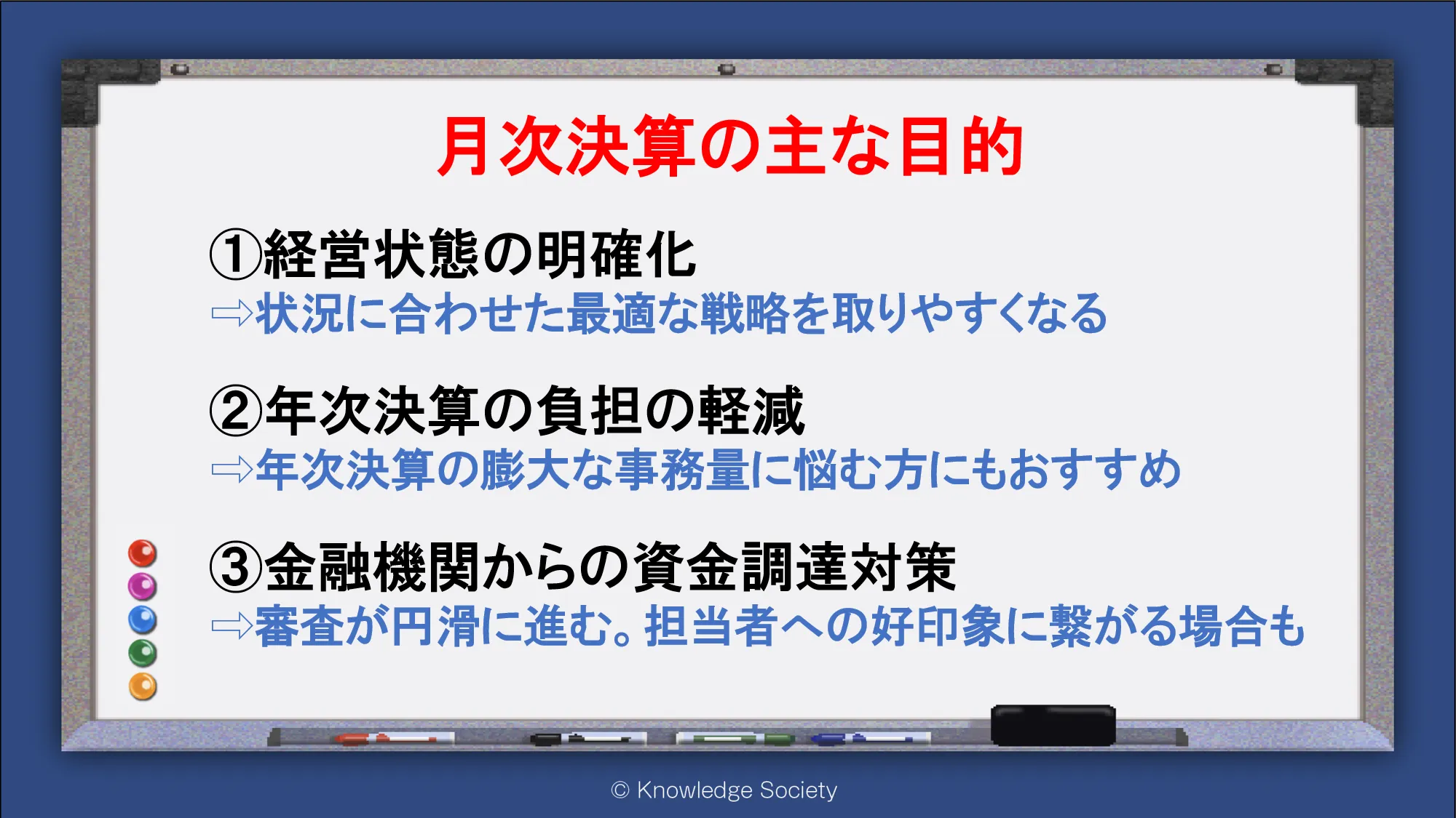 シェアオフィス・バーチャルオフィス@東京都千代田区|ナレッジソサエティ > 月次決算の主な目的