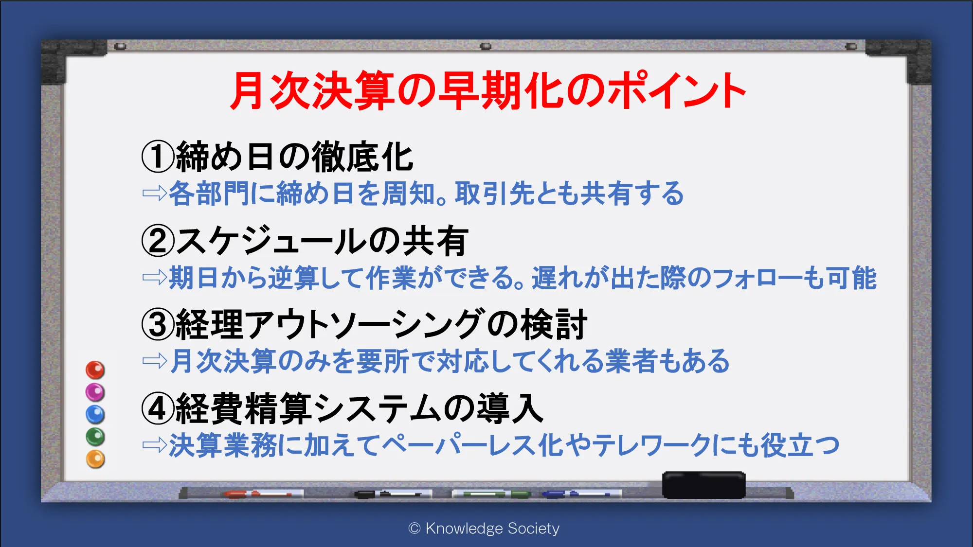 シェアオフィス・バーチャルオフィス@東京都千代田区|ナレッジソサエティ > 月次決算の早期化のポイント