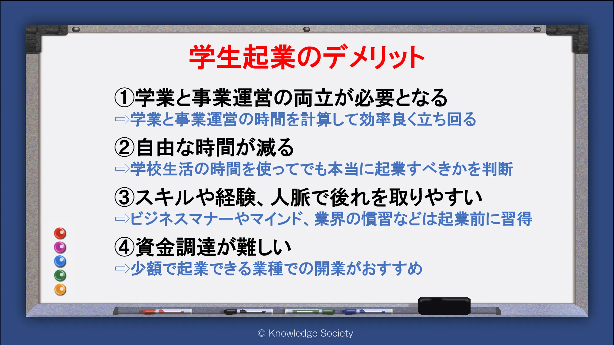 シェアオフィス・バーチャルオフィス@東京都千代田区|ナレッジソサエティ > 学生起業のデメリット