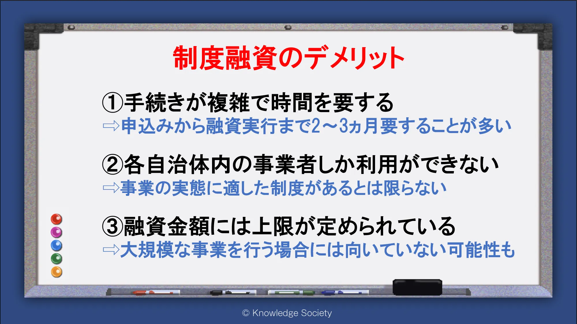 シェアオフィス・バーチャルオフィス@東京都千代田区|ナレッジソサエティ > 制度融資のデメリット