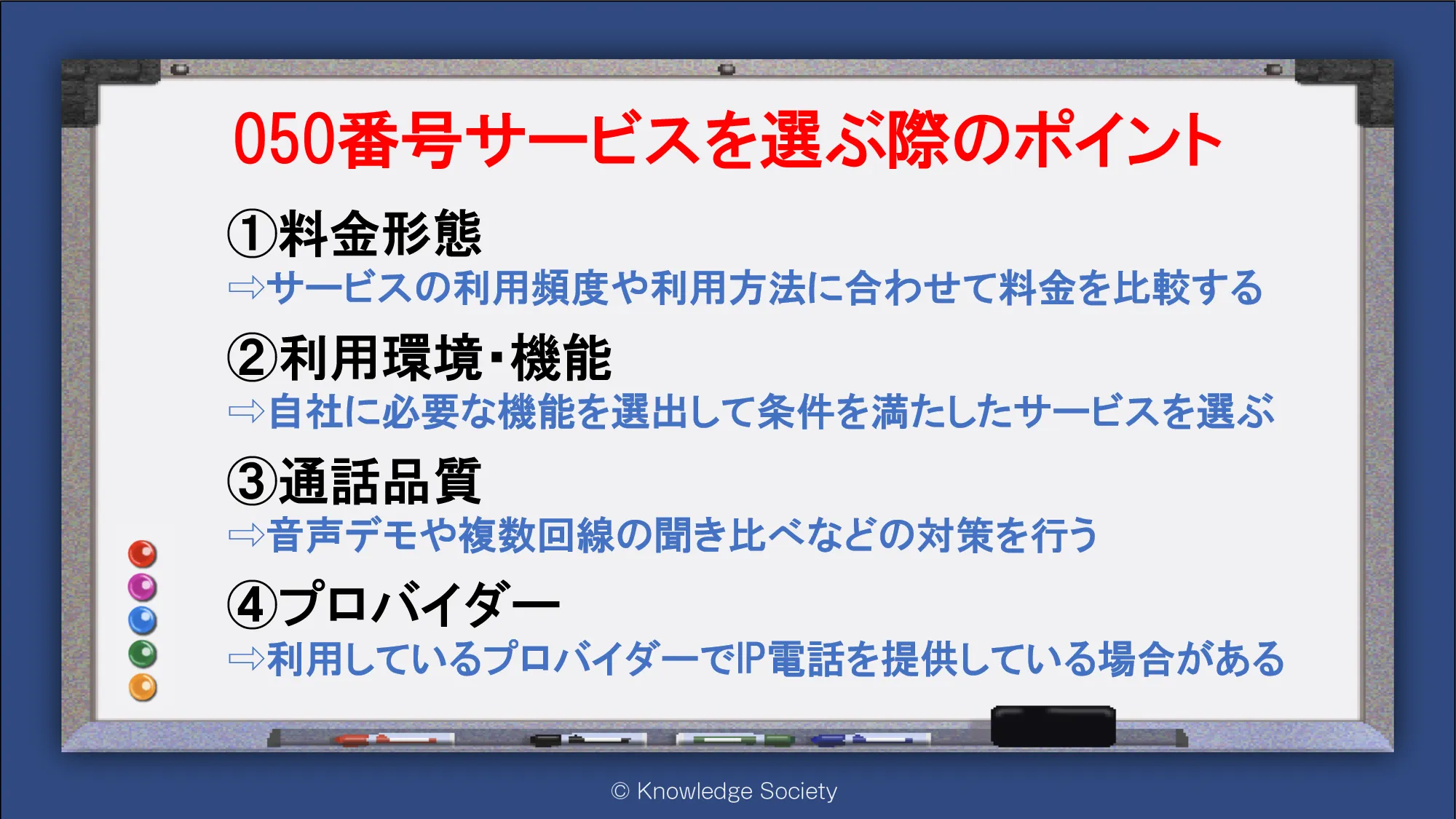 シェアオフィス・バーチャルオフィス@東京都千代田区|ナレッジソサエティ > 050番号サービスを選ぶ際のポイント
