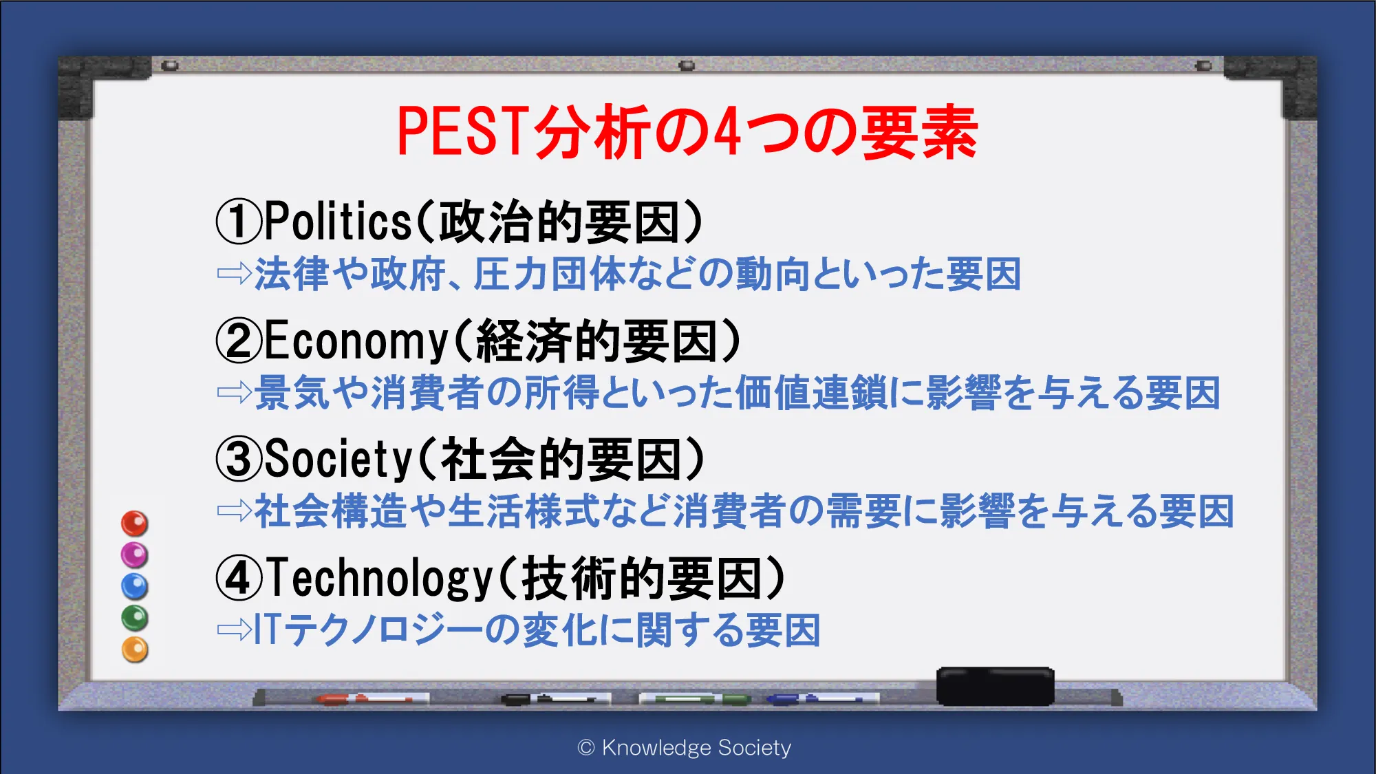 シェアオフィス・バーチャルオフィス@東京都千代田区|ナレッジソサエティ > PEST分析の4つの要素