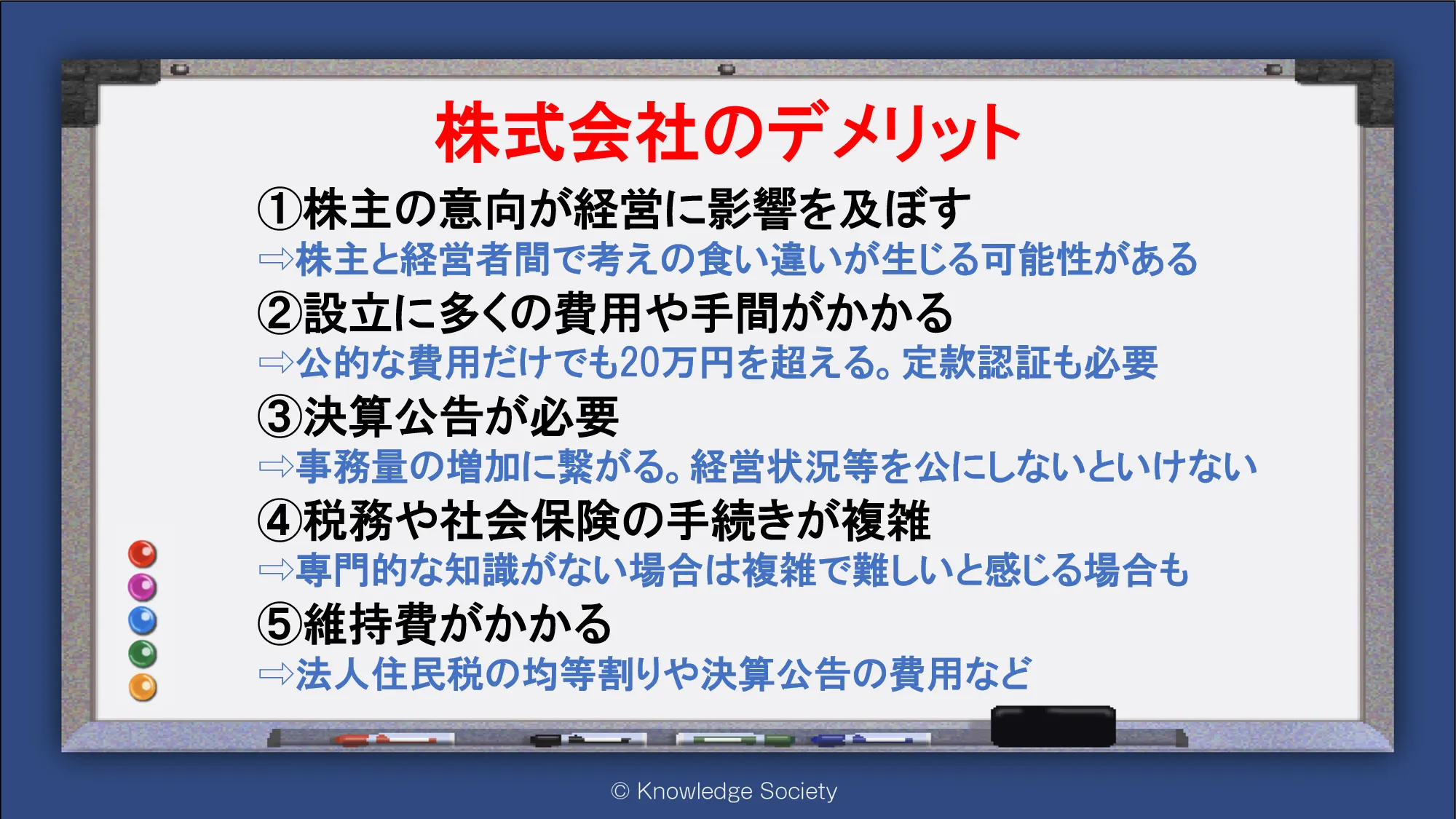 シェアオフィス・バーチャルオフィス@東京都千代田区|ナレッジソサエティ > 株式会社のデメリット