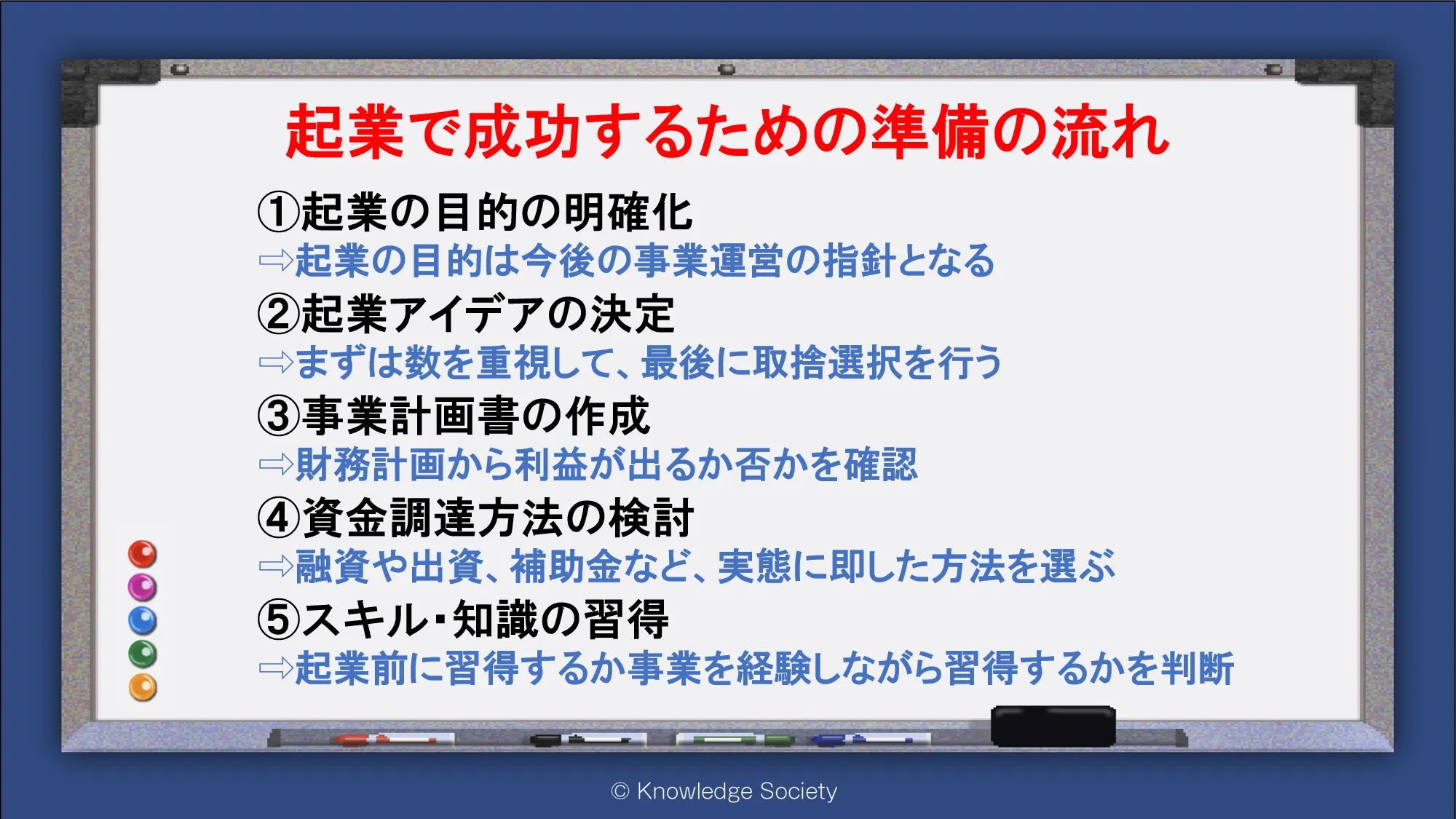 シェアオフィス・バーチャルオフィス@東京都千代田区|ナレッジソサエティ > 起業で成功するための準備の流れ