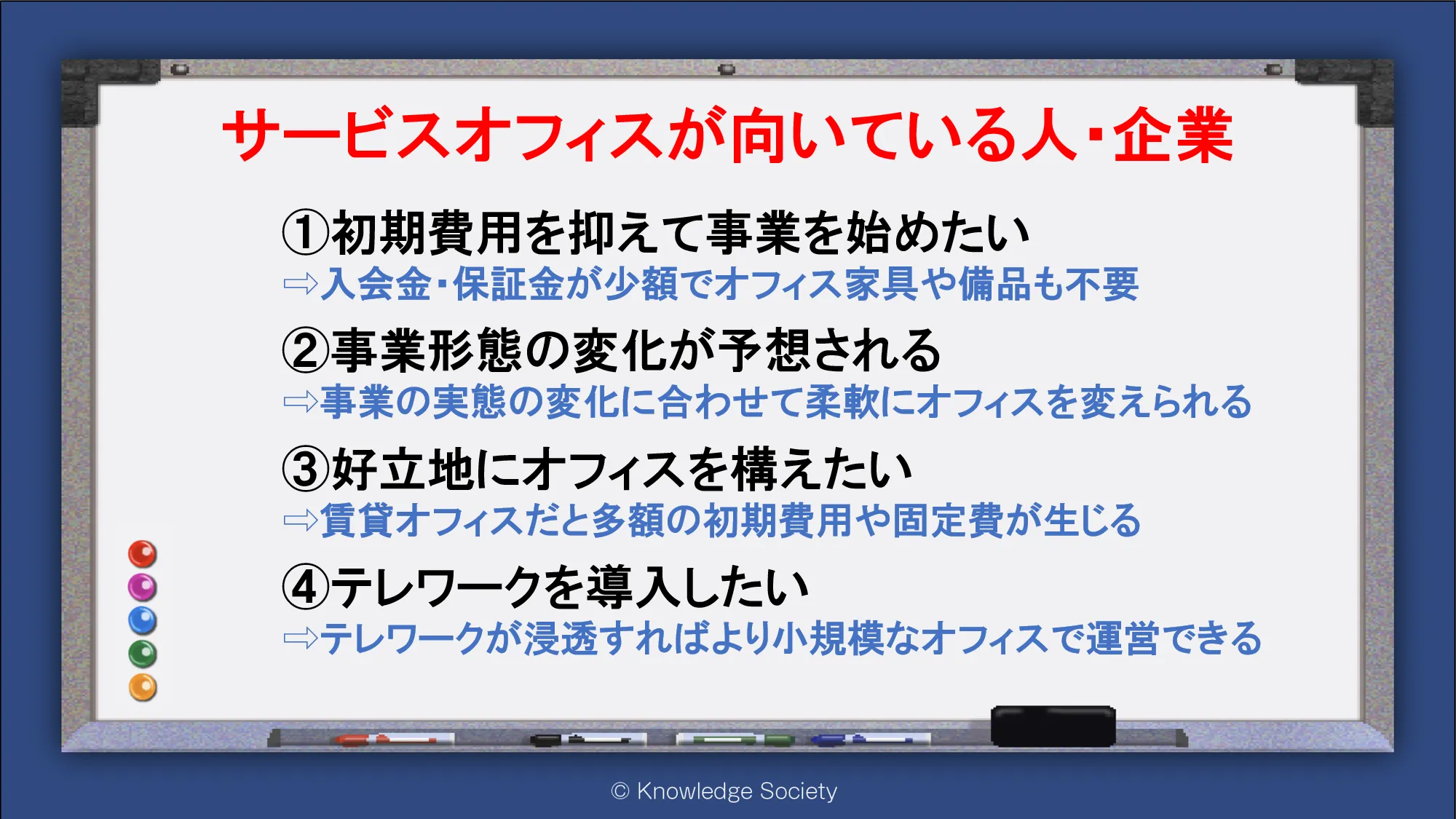 シェアオフィス・バーチャルオフィス@東京都千代田区|ナレッジソサエティ > サービスオフィスが向いている人・企業