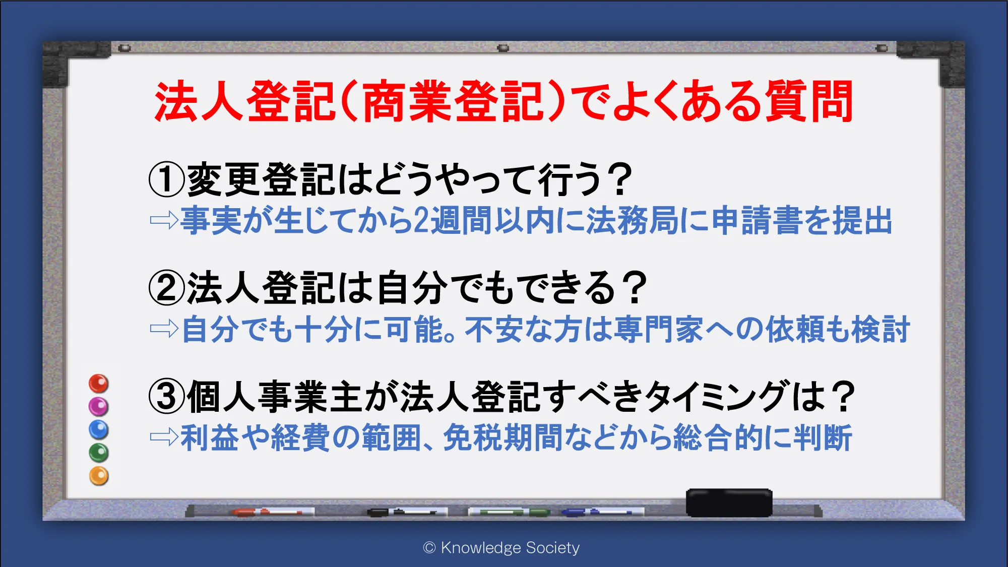 シェアオフィス・バーチャルオフィス@東京都千代田区|ナレッジソサエティ > 法人登記(商業登記)でよくある質問