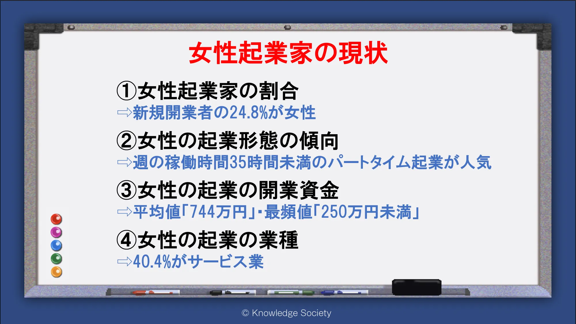 シェアオフィス・バーチャルオフィス@東京都千代田区|ナレッジソサエティ > 女性起業家の現状