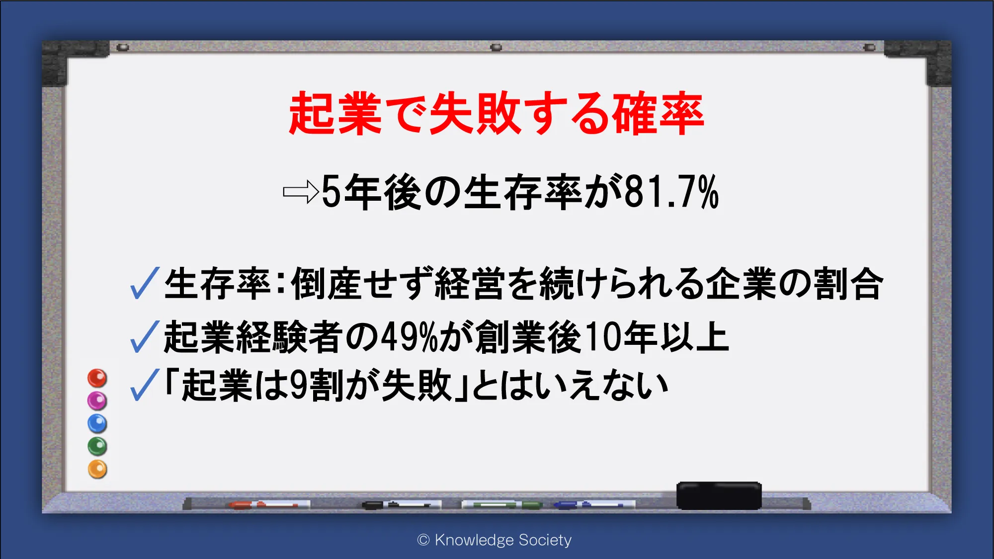 シェアオフィス・バーチャルオフィス@東京都千代田区|ナレッジソサエティ > 起業で失敗する確率