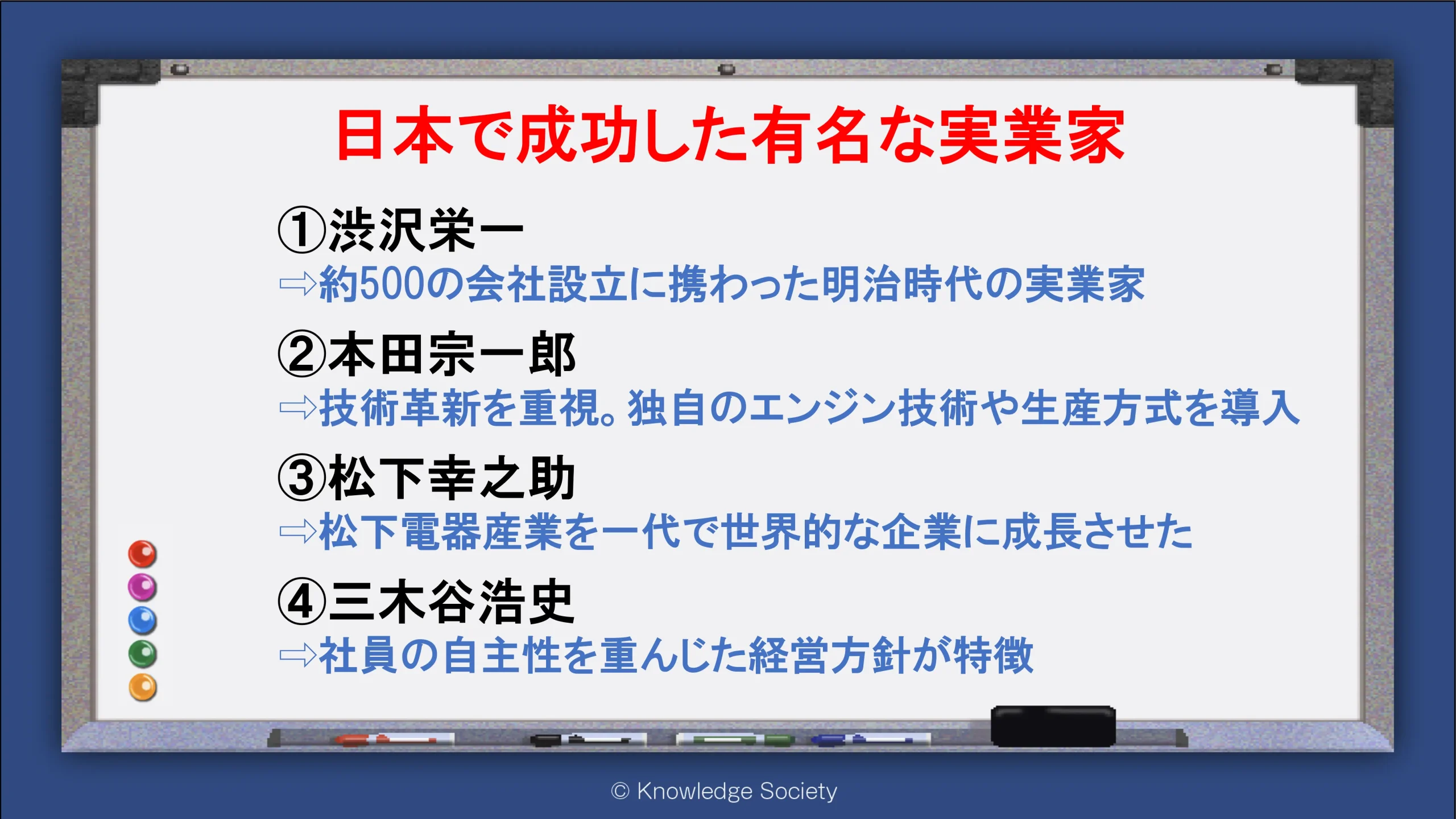 シェアオフィス・バーチャルオフィス@東京都千代田区|ナレッジソサエティ > 日本で成功した有名な実業家