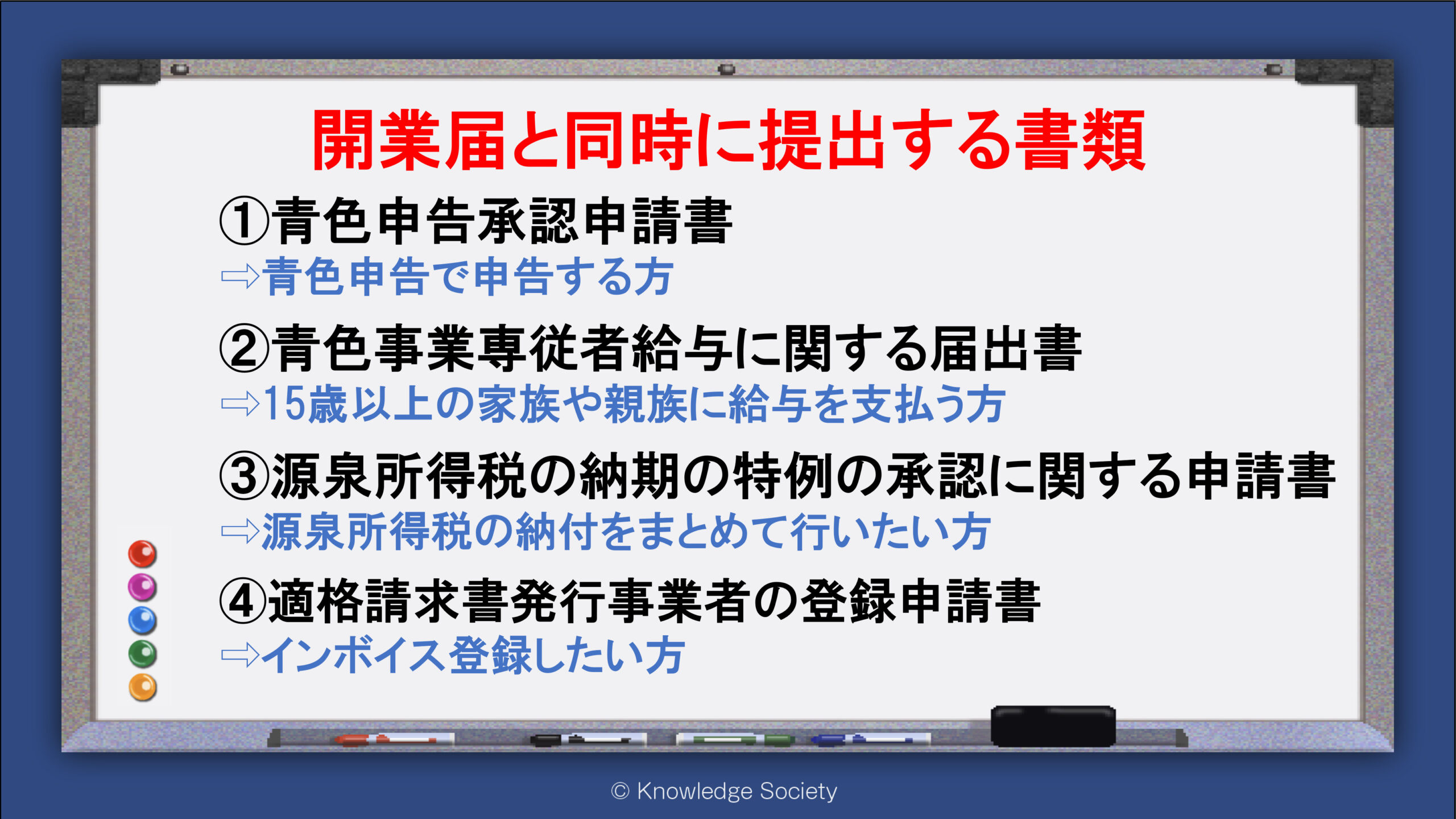シェアオフィス・バーチャルオフィス@東京都千代田区|ナレッジソサエティ > 開業届と同時に提出する書類