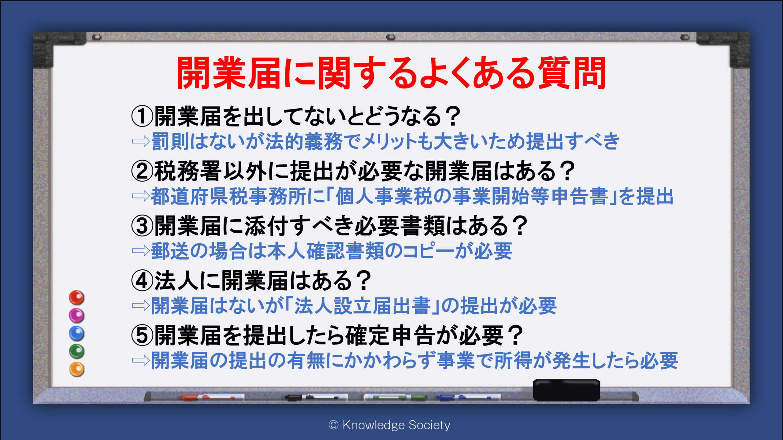 シェアオフィス・バーチャルオフィス@東京都千代田区|ナレッジソサエティ > 開業届に関するよくある質問