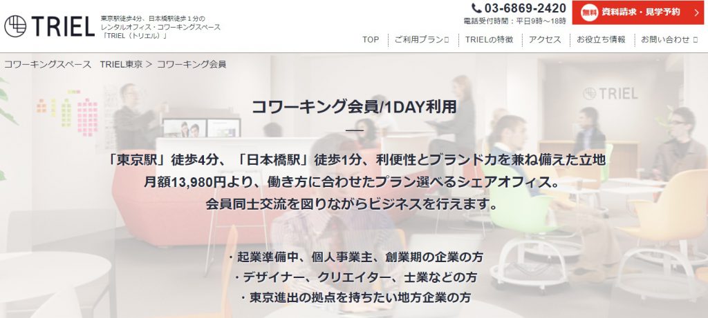 【詳細】3L entrance株式会社が運営するコワーキングスペースです。2014年創業と比較的新しさがあります。日本橋2丁目のビルに拠点を構えています。レンタルオフィス会員、コワーキング会員、バーチャルオフィス会員の3種類のプランを提供しています。レンタルオフィス会員は個室を利用することができ、法人登記や受付コンシェルジュ、応接室・会議室などを利用することができます。コワーキング会員では高速インターネットやフリードリンクや、業務に集中できる集中スペースなども確保してあります。レンタルオフィスが月額19,800円から、コワーキングスペースが月額6,980円から利用することが可能です。