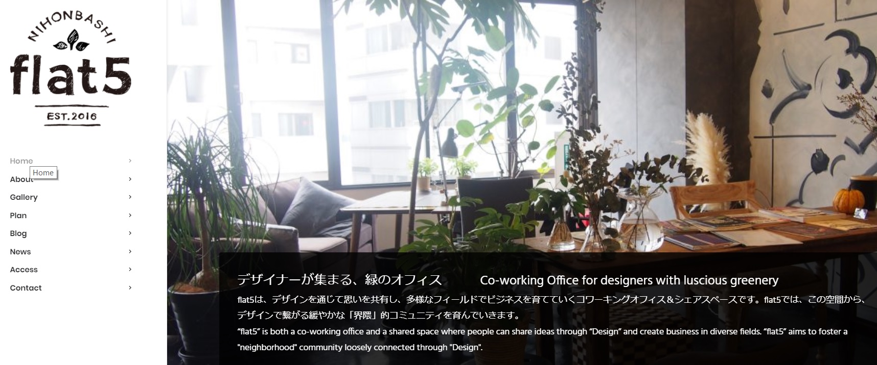【詳細】株式会社asDesignが運営するコワーキングスペースです。flat5は、デザインを通じて思いを共有し、多様なフィールドでビジネスを育てていくコワーキングオフィス&シェアスペースです。flat5では、この空間から、デザインで繋がる緩やかな「界隈」的コミュニティを育んでいきます。(HP)