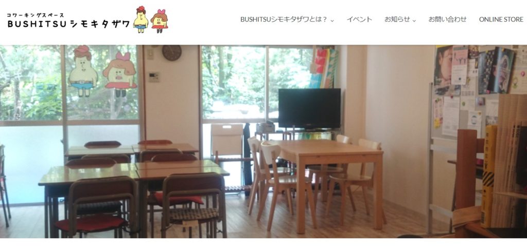 【詳細】BUSHITSUシモキタザワでは、仕事や作業、会議の場として、コーヒーを飲みながら自由に電源やネット回線が利用できます。 また、レンタルスペースとして、教室やワークショップ、イベント会場にもご利用頂けます。インタビュー取材の場や下北沢でのロケ撮影の控え室などにも便利です。(HP)