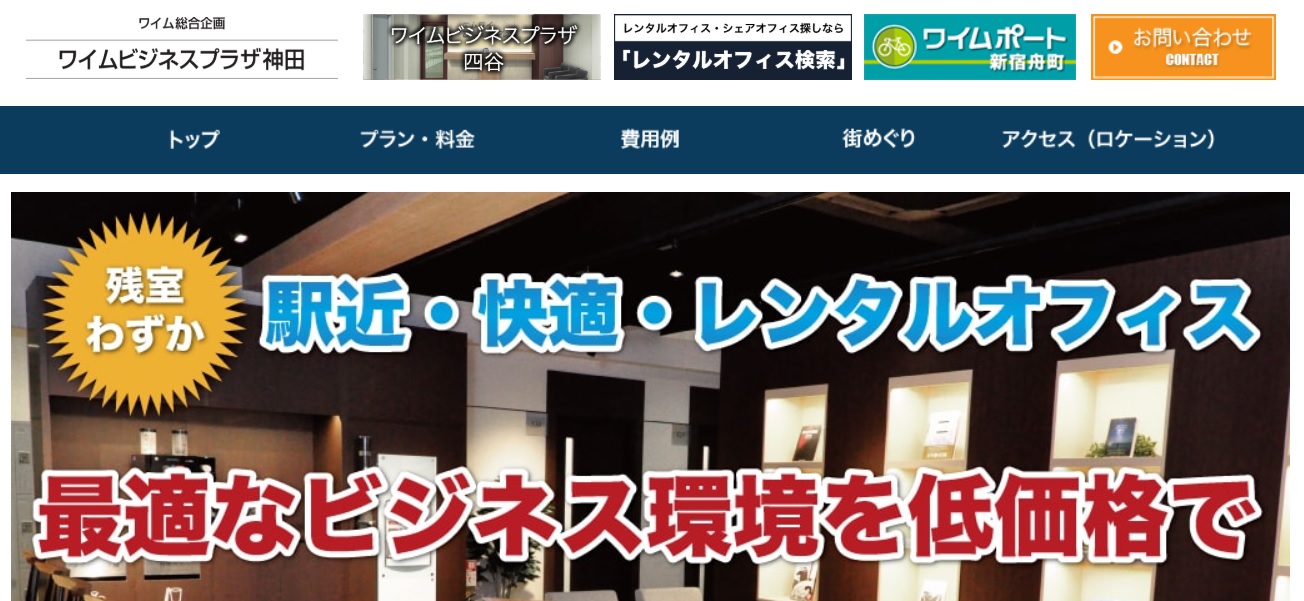 【詳細】ワイム総合企画株式会社が運営するコワーキングスペースです。四谷にも拠点を構えています。個室を共有して利用する共有個室メンバーと、ラウンジをたまに利用する方向けのラウンジメンバーの2種類のコワーキングプランが用意されています。共有個室メンバーは月額18,000円、ラウンジメンバーは月額10,000円から利用できます。両プラン共に法人登記が可能です。