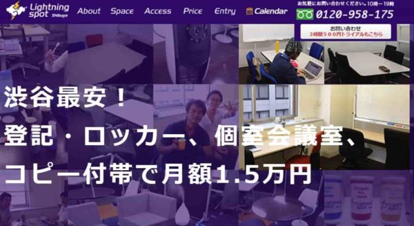 (法人登記やWEB表記等の住所だけ利用するバーチャルオフィスは4,500円~)