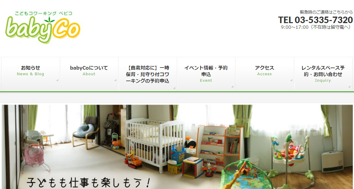「こどもコワーキングbabyCo」は、待機児童問題をきっかけとして立ち上げた、子育て世代が集うコワーキングスペース&子育てサロンです。 正社員育休明け、フルタイム勤務でも保育園への入園が叶わない実情を鑑みると、フリーランスや求職中の保護者はさらに保育園に入園できません。 では、その人たちは保育を必要としないのか、というとそんなことはありません。 その行政の手が届かない人たちに、個人として何ができるのか考えた結果のひとつが、「子連れで仕事できる環境を用意すること」でした。 キャッチフレーズは「子どもも仕事も楽しもう!」子どもと一緒にいながら仕事にも集中できるって、素晴らしいと思いませんか?(公式HPより) キッズスペースがあるので保育士さんにお子さんの世話を任せた状態で仕事に集中できます。また、代表の曽山さんはキャリアカウンセラーの経験を持ち、保育園や幼稚園の入園相談に乗ってくれます。ママ友同士の交流を盛んにするイベントも随時おこなっています。 ドロップインも用意されているので、気軽にお試しできるのが魅力です。 |