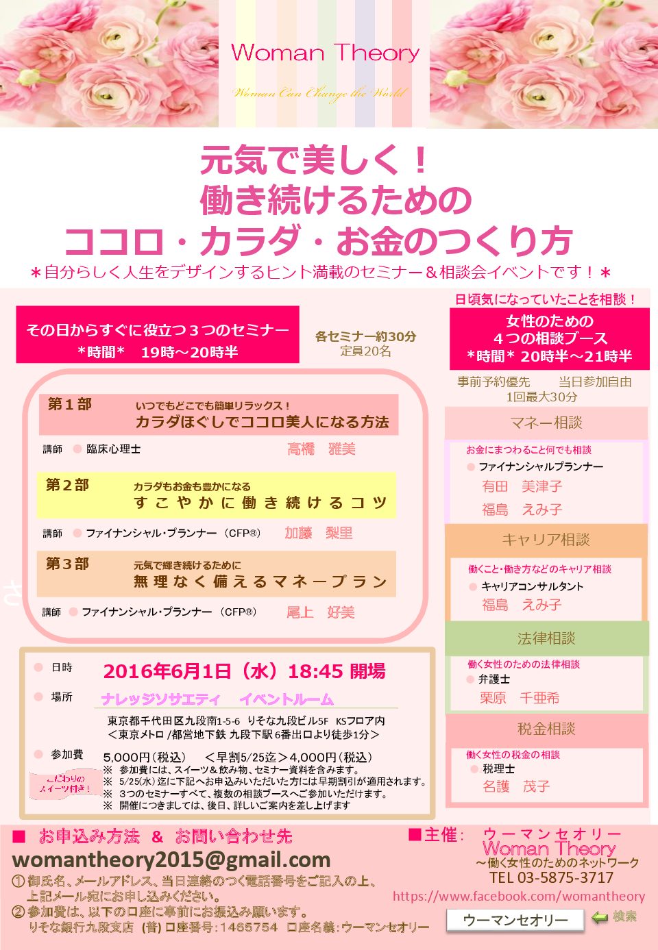シェアオフィス・バーチャルオフィス@東京都千代田区|ナレッジソサエティ > 起業家向けイベント・セミナー > セミナー > 元気で美しく! 働き続けるためのココロ・カラダ・お金のつくり方 > セミナー詳細