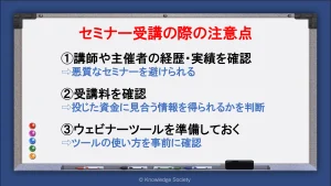 セミナー受講を検討する際に注意すべきポイントが3つあります。