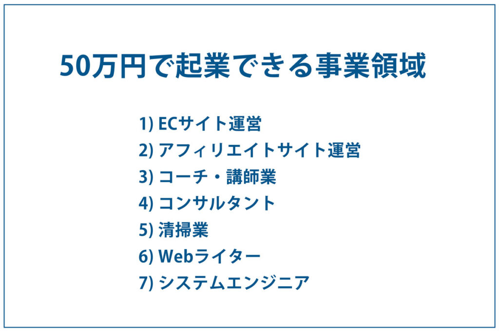 ここからは、50万円で起業できる具体的な事業領域を解説します。1つでもスキルを持つビジネスがあれば、ぜひチャレンジしてみてください。