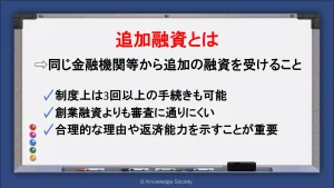 追加融資は創業融資と比較して審査に通りにくい点に留意しましょう。